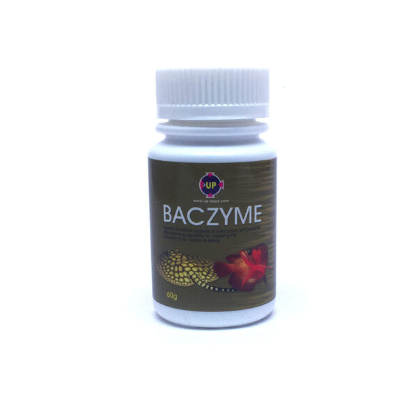 Baczyme es un complejo de bacterias benéficas que ayudan a eliminar de forma natural los residuos orgánicos y deshechos del acuario. Esto ayuda a mantener el agua en excelentes condiciones, mas clara y reduciendo en gran medida la necesidad de mantenimientos en el acuario.
