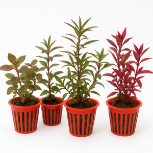 Planta de tallos delgados de hojas puntiagudas. Su color rojo en las puntas lo obtiene bajo altos niveles de iluminación y aporte de CO2.